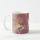 N'est-ce pas une douce tasse de vacances ? Mes flocons de neige originaux dans les tons terreux sur un arrière - plan de mousse rose et graphique de rennes, pour ce Noël festif !