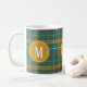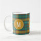 Élégante tasse motif twill turquoise, orange et marron. Une lettre blanche centrée sur les trois côtés de la tasse de café ou de thé est facile à personnaliser avec votre monogramme. Fait un grand cadeau pour le réchauffement de la maison.
