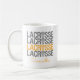 Des lettres en gras épellent le mot "LACROSSE" avec le mot "O" remplacé par un panier. Le design un peu déprimé fait un grand cadeau personnalisé pour un joueur, un entraîneur, une équipe ou un fan. Disponible en rouge, orange, jaune, violet, vert, bleu, gris, noir, vert forêt, marine, marron, orange brûlé, or et bleu poudreux. Produits correspondants disponibles.