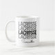 Des lettres en gras épellent le mot "LACROSSE" avec le mot "O" remplacé par un panier. Le design un peu déprimé fait un grand cadeau personnalisé pour un joueur, un entraîneur, une équipe ou un fan. Disponible en rouge, orange, jaune, violet, vert, bleu, gris, noir, vert forêt, marine, marron, orange brûlé, or et bleu poudreux. Produits correspondants disponibles.