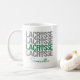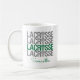 Des lettres en gras épellent le mot "LACROSSE" avec le mot "O" remplacé par un panier. Le design un peu déprimé fait un grand cadeau personnalisé pour un joueur, un entraîneur, une équipe ou un fan. Disponible en rouge, orange, jaune, violet, vert, bleu, gris, noir, vert forêt, marine, marron, orange brûlé, or et bleu poudreux. Produits correspondants disponibles.