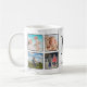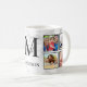 Créez votre propre tasse de café de collage photo personnalisée 8 avec vos images personnalisées, monogramme et nom sur un élégant arrière - plan en marbre blanc élégant.