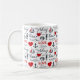 Motif nautique sans voile avec symboles nautiques (voilier, ancre, vagues, hippocampe, coquillage) et décoration de coeur rouge avec design texte sur arrière - plan blanc