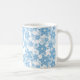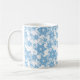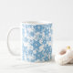 Laisse-le neiger ! Arrière - plan de flocons de neige sur la tasse de café. Un motif simple, élégant et élégant flacon de neige blanc et bleu transparent.