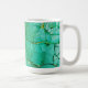Des couches criblées de turquoise vibrante créent un motif texturé, avec des touches de jaune accentuant les divisions. La composition ressemble à des formations minérales naturelles, offrant une riche tapisserie de nuances et de lignes.