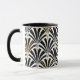 Reproduction numérique d'un fond d'écran Art déco classique, ventilateur motif - noir sur blanc, orné d'or