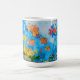 Tasse florale peinte, fleurs abstraites vives contre le ciel.