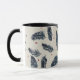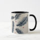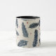 Une tasse à café au design de fougères rouge et bleu denim