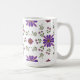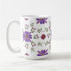 Sirotez votre brasserie préférée dans un style élégant avec cette tasse florale vibrante. Parfait pour égayer votre routine matinale ! Ce motif floral d'art folklorique fantaisiste enroule autour de la tasse et présente des fleurs violettes et rouges avec des accents d'or et des feuilles verts frais contre l'arrière - plan blanc de la tasse.