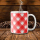 Une tasse à café avec un motif rétro rouge et blanc rayé ou plaid.