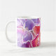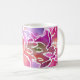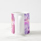 Une jolie tasse blanche au design omniprésent d'un tableau d'aquarelle original de fleurs peintes rose pourpre.