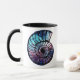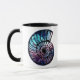 Mug dans une spirale, naustilus carapace à motifs d'une nébuleuse bleue et violette aux étoiles