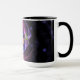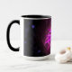 Nebula conception de l'espace imaginaire pour une tasse jumbo avec du noir sur la poignée et l'intérieur. La tasse a des gaz nébuleux entourant un plante de passion en lavande avec l'espace et les étoiles bleues. Un design assez original. Ce serait aussi un beau cadeau.