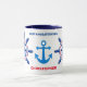 Une tasse à café élégante et étonnante sur le thème du voyage autour du monde par mer. Une ancre bleue contre l'arrière - plan d'une barre ou d'un volant bleu foncé. Tous deux sont stylisés comme s'ils étaient des objets 3d. Deux textes modèles personnalisables de couleur rouge font le tour de la barre. Vous pouvez les modifier ou les supprimer indépendamment. Elles sont les suivantes : "N'IMPORTE QUEL TEXTE ICI OU SUPPRIMER CE TEXTE" dans la partie supérieure, "NEW YORK * 40°40'04"N 74°02'26"W * ETATS-UNIS" dans la partie inférieure. Le troisième texte modèle "USNYC" est le code maritime international et se trouve au bas de l'ancre. Une ancre bleue et deux textes plus modèles au centre de la tasse. Vous êtes libre de les modifier ou de les supprimer comme bon vous semble. Vous pouvez également modifier l'image. Veuillez utiliser le bouton "Edit Design" ou "Personnaliser" (comme le coque peut être) de la couleur bleue pour accéder à l'outil "Designer Tool" où vous pouvez tout changer, y compris la police, la couleur de l'arrière - plan, etc. Soyez créatif, customisez et achetez-en un, amusez-vous et soyez heureux !