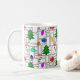 Cette tasse a une conception géométrique plus large des arbres de Noël, des sucres de canne, des lumières et des ornements avec des contours rectangle gris sur le dessus. Comme le design mais veulent une couleur différente ? Message-moi.