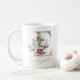 Cette tasse à café botanique de vacances rustique présente une végétation peinte à la main avec des baies rouges et une lettre en faux or E avec un nom personnalisé dans une main d'or assortie lettre moderne en dessous de l'initiale. Fait un beau cadeau pour cette femme spéciale dans votre vie pour Noël. Conçu par Susan Coffey.