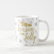 "C'est la saison d'être joyeux, et quelle meilleure façon d'être joyeux qu'avec cette parties scintillant d'or manuscrite de style script police. Derrière le design typographique, des flocons de neige en parties scintillant d'argent tombent pour ajouter encore plus de bonheur à votre période de Noël ou de Fêtes. Versez-vous une tasse de chocolat chaud dans cette tasse festive.