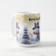Profitez de votre café matinal en cette saison de vacances avec une Gold Winter Forest Snowman Christmas Coffee Mug. Le design de la moquette comprend un mignon bonhomme de neige dans un chapeau et écharpe de charme debout dans une scène de forêt hivernale avec la neige tombée. Autres cadeaux et objets de vacances disponibles avec ce design aussi.