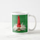Cette tasse a une photo de Noël Elf, inspirée par les créatures suédoises de région boisée appelées Tomte. Le casquette rouge grand, cheveux blancs sauvages, tricotent à la main le chandail brun sur l'arrière - plan vert clair.