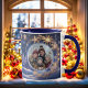 La saison de Noël - un temps plein d'émerveillement, de joie, d'espoir, d'attentes et de surprises. Cette tasse présente des flocons de neige dorés tourbillonnant dans le ciel bleu de la nuit au-dessus de la forêt d'hiver avec une image de votre famille, animal de compagnie ou ce que vous aimez! Merveilleuse tasse pour grands-parents ! Photo et texte personnalisés.