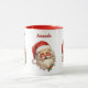 Une tasse avec une joyeuse illustration d'un Père Noël de style vintage aux joues rouges roses. portant son chapeau de Père Noël rouge classique et son grand ours blanc. Un spring de saint ajoute à l'esprit festif de fête de ce design.