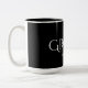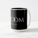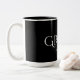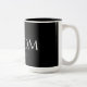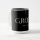 Mug classique noir et blanc Groom. Texte de bloc élégant sur un arrière - plan noir. Vous pouvez supprimer les initiales de la mariée et du marié ainsi que la date du mariage en supprimant le champ de texte.