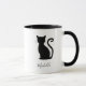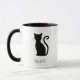 Cute tasse à café avec un design simple avec une silhouette de chat noir et votre nom sur un arrière - plan blanc. La couleur arrière - plan peut être changée en n'importe quelle couleur en cliquant sur le bouton personnaliser. Cette tasse à café personnalisée fait un grand cadeau pour un amoureux des chats.