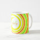 Cette tasse colorée présente un design abstrait dans une palette de couleurs printanières avec un nom et un monogramme dans les tons vert et orange correspondants.