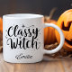 Le design moderne de la tasse à café Halloween comporte du texte "Classy Witch" en typographie noire. Drôle personnalisable tasse à café personnalisable dispose d'un design moderne de typographie noire décorative avec des accents étoiles. Fait pour le cadeau personnalisé parfait pour elle - votre amie, petite amie, soeur ou même votre voisin. Parfait pour leur faire se sentir spécial, renforcer leur confiance et obtenir un cadeau unique et simple!