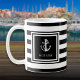 Mug Nom du bateau Ancre en bande noire et blanche