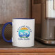 Bienvenue À Bord Du Bateau Nom Palmiers D'Été Coucher De Soleil Retro Style Café Mug. Texte bleu marine ou choisissez votre couleur. Deux tons bleu et blanc.