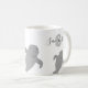 Une tasse d'animal monogramme qui comporte un nom personnalisé et des illustrations de lamanthe. La tasse est habillée de gris, blanc et noir. Customisez simplement le nom et le monogramme, ajoutez cette tasse à votre panier et dégustez des lamantins avec chaque boisson chaude. Nom du monogramme Manatee Animal Café Mug Conception des fêtes | ©Melissa Patton - Artiste/Illustrateur
