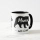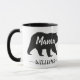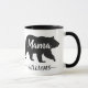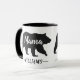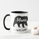 Cette tasse à café à thème rustique présente un ours noir sur un simple arrière - plan blanc. L'ours dit "Mama" dessus en typographie blanche avec un nom ci-dessous pour vous permettre de personnaliser. Conçu par l'artiste mondialement connu Tim Coffey.