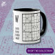 C'est une tasse à café SUDOKU amusante pour quand vous attaquez ces puzzles Sudoku. Le design simple, noir et blanc montre deux puzzles incomplets à l'avant et à l'arrière, avec un MONOGRAMME PERSONNALISABLE et du texte au milieu. Cela ferait un cadeau idéal pour les passionnés de Sudoku dans votre vie. Offres assorties disponibles.