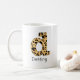 Personnalisez cette tasse de café en minuscules "d" empreinte de léopard personnalisée en ajoutant un nom. Les options permettant de modifier la couleur du texte pour le nom, sa taille et le type de police sont disponibles.
