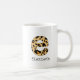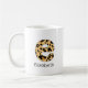 Personnalisez cette tasse de café en minuscules "e" personnalisée empreinte de léopard en ajoutant un nom. Le texte en noir du nom personnalisé est une police de type écriture girly.