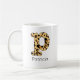 Personnalisez cette tasse de café en minuscules empreinte de léopard personnalisée "p" en ajoutant un nom. Les options permettant de modifier la couleur du texte pour le nom, sa taille et le type de police sont disponibles.