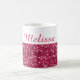 Personnalisez cette tasse rose chic, fascinante et étincelante de parties scintillantes avec votre nom pour créer votre propre tasse de café unique et spéciale. Fait un grand cadeau scintillant pour toutes les occasions spéciales. NOTE : l'arrière - plan de regard de parties scintillantes d'or est seulement un effet imprimé.