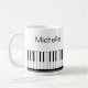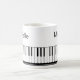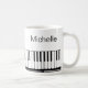 Mug moderne et élégant avec clavier de piano et notes de musique en noir et blanc personnalisées avec votre nom dans un script manuscrit. Idéal pour les professeurs de musique, musiciens et professionnels de la musique. MODIFICATIONS : Vous pouvez modifier la couleur blanche de l'arrière - plan ou le style, la couleur, la taille et le placement de la police de texte en cliquant sur MODIFIER pour un look personnalisé ou simplement supprimer le nom de l'exemple pour laisser cette zone vide. OPTIONS : L'échantillon est affiché dans la tasse de 11 oz ; d'autres tailles et styles de boissons sont disponibles sur la page de commande