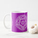 Ce mandala blanc est assis sur un arrière - plan violet brillant. La couleur est vive et créative. Partie de la collection Jarn Mandala. Cette conception peut ne pas s'imprimer aussi brillamment qu'elle apparaît en ligne.