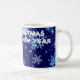Nuit de Noël bleu profond et fortes chutes de neige. De belles flocons de neige, grands et petits. Joyeux Noël et Bonne Année ! Que vos meilleurs voeux se réalisent ! Que la santé, l'amour et la prospérité soient avec vous ! Tasse au café. Vous pouvez modifier ou supprimer le texte modèle Joyeux Noël et Bonne Année