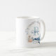 This ocean themed mug is designed with a blue and pink watercolor floral wreath, with a blue whale at the bottom. The middle of the wreath includes a customizable monogram, that you can personalize with a name and initial.