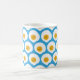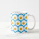 Un motif répétitif d'oeufs frits heureux et ensoleillés se retrouve sur un arrière - plan bleu.
