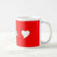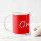 Cette tasse pour votre grand-mère hollandaise ou allemande présente un arrière - plan rouge vif avec "Oma" écrit en écriture blanche. Il y a un coeur blanc assorti juste à côté.