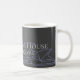 Coordonnées Latitude et longitude pour l'Opéra de Sydney, le site emblématique de l'architecture et un site de l'UNESCO situé à Sydney, Australie. Cette tasse à café élégante présente une ligne de construction violette pastel avec une couche de texte sur un arrière - plan gris foncé