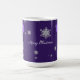 Profitez de votre café matinal en cette saison de vacances avec une tasse de café pourpre ornementée de Noël. Le design de la musique est composé d'un trio d'ornements de Noël suspendus de chaque côté de la tasse avec des flocons de neige tombants et un arrière - plan violet foncé. Autres cadeaux et objets de vacances disponibles avec ce design aussi.