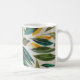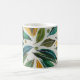 Folhas de vários tipos feitas em aquarela, espalhadas umas das outras, em cores verdes e amareladas, simulando a chegada do outono.