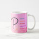 Cette tasse sera un favori pour tout le monde, de votre petite-mère douce à votre soeur adolescente. Avec le bon message, un mug peut devenir le compagnon précieux de n’importe qui pour les années à venir. Ce design présente une belle lettre dessinée à la main "P" en noir cursif sur un arrière - plan d'aquarelle étonnant. Le côté gauche présente un dégradé chaud de jaune à rose, tandis que le côté droit affiche un dégradé doux de rose à jaune. Autour de la lettre sont des mots vibrants de différentes couleurs, dont le bleu, l'orange, le rouge, le violet et le rose, mettant en évidence des traits positifs commençant par la lettre "P". L'effet global est un design visuellement attrayant et stimulant qui célèbre la beauté de la lettre "P" et ses qualités associées. L'arrière - plan aquarelle ajoute une touche d'élégance et de sophistication, ce qui rend ce design parfait pour des raisons d'inspiration ou de motivation.