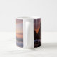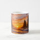 Rocky spires rise above the sea, as the sun sets over the horizon. Colorful, beautiful, and peaceful scene.