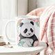 Créez une tasse unique et personnalisée avec ce design charmant avec un adorable panda entouré de fleurs roses et de feuilles verts aux accents dorés. Le centre du cadre floral est laissé en blanc, vous permettant d'ajouter un nom, ce qui le rend parfait pour les cadeaux customisés ou la papeterie. Cette magnifique illustration combine l'attrait mignon du panda avec des éléments floraux élégants, ajoutant une touche personnelle à votre routine quotidienne.